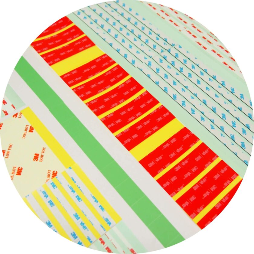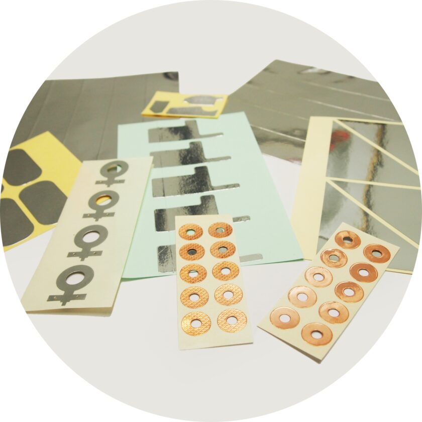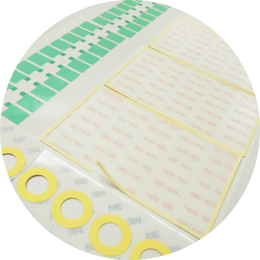 片面、両面テープの加工をはじめ、金属箔(銅、アルミ等)テープ、クッション材、ファスニング材等、特殊なテープにいたるまで、各種特徴のある材料を取り揃え、さまざまな加工に対応しています。