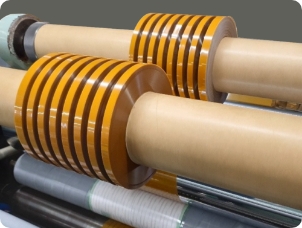 2層や3層のラミネート加工は勿論、細幅から広幅のテープまで、ご要望のサイズに合わせ加工します。